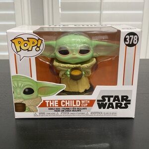 Funko The Mandalorian POP! Star Wars The Child (Baby Yoda / Grogu) Vinyl Bobblehead Figure #378 [with Cup]. The Mandalorian's cute companion, affectionately called ''baby Yoda,'' but officially known as ''the Child,'' will bring a sense of calm contemplation to your collection with this Pop! Vinyl Bobble Head figure that depicts him holding his broth cup.