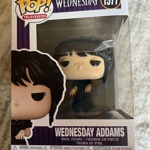 The Funko Pop! Television Wednesday Addams Vinyl Figure Collectible is a standard-sized vinyl figure of the character Wednesday Addams from The Addams Family franchise. Standing at 4 inches tall, this figure is in its original packaging, making it a collectible item for fans of the television show. With its exclusive features and tie-in to the popular series, this Funko Pop is a must-have for any television-themed collector's display.