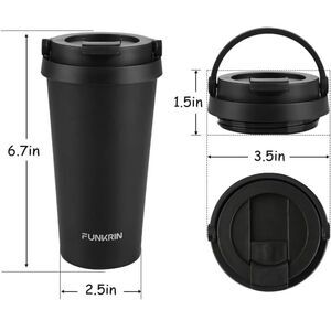 Funkrin Insulated Coffee Mug with Ceramic Coating, 16oz Iced Coffee Tumbler Cup with Flip Lid and Handle, Double Wall Vacuum Leak-Proof Thermos Mug for Travel Office School Party Camping.