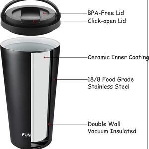Funkrin insulated ceramic double wal coffee mug 16 OZ with flyp lid & handle NWT