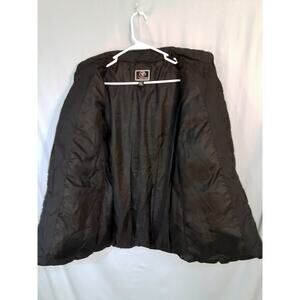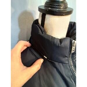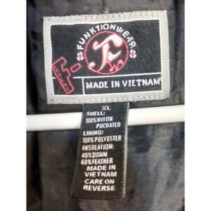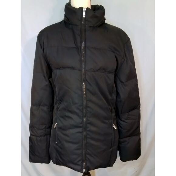 Funktion wear winter coat, black. coat is down and feather-insulated with two zippered pockets.