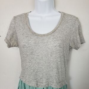 Funktional Medium Knee Length Dress Short Sleeve Grey Cutout Top Blue Button