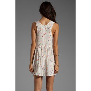 Funktional Techni Romper in Techni, sold at Revolve, size small. Self: 100% silk.Lining: 100% poly. Dry clean only. Front button placket. Shirred waist. Side pockets. Pre-owned condition with no flaws.