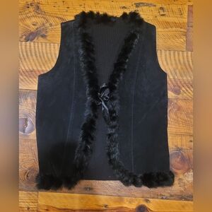 Funky Black Fur Trim Suede Vest