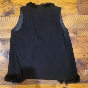 This unique vest has fur trim, with a suede front and knit back. Unusual and funky, its perfect for anyone who likes to stand out from a crowd.