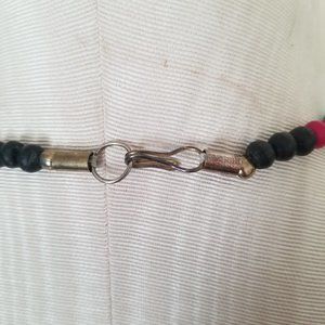 -Funky teal beads w/round red & black acrylic beads