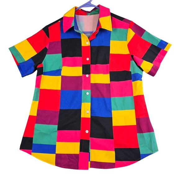 Funky Check Disco Style Button Front Shirt Women's Small