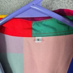 Funky Check Disco Style Button Front Shirt Women's Small Oversized Lightweight