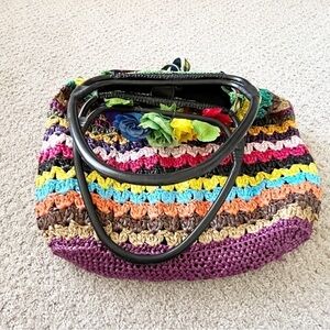 Funky Colorful Plastic Straw Beach Tote Hobo Summer Oddity Floral Stripe Shopper