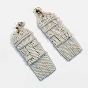 Funky Earrings, Boho, Rubber, Dangles, White, Vintage, Pierced, 2 3/4" Long