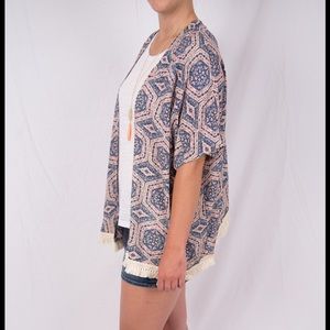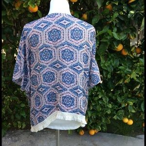 Fabulous print kimono with fringe detail. Perfect to pair with denim for a relaxed, casual vibe. Never worn. Brand New. NWT