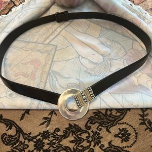 Funky Fun Black Belt with Silver Circle Buckle-Vintage Y2K era Sm/m fit
