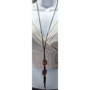 Funky Gemmed Chain Tassel Gold Tone Necklace