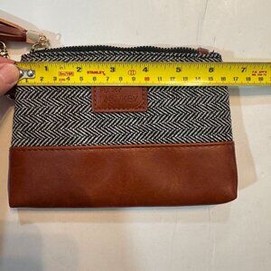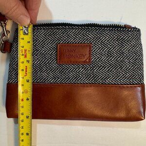 Funky Monkey Greta Wristlet Clutch Herringbone Faux Leather Tassel Zip Strap