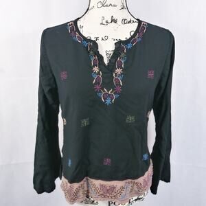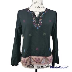 Funky People Black Embroidered Top Artsy Hipster Size M
