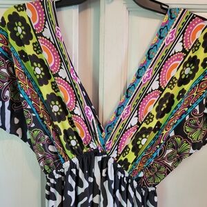 Funky People Vibrant Bold Print Deep V-neck Mini Dress