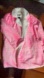 Funky Pink Faux Fur Coat with Red Lettering by Rockstar Original