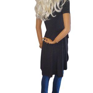 This Hi-low blouse by Nylon Apparel is so unique! Made from soft fabric, it drapes so nicely on the body and feels dreamy to wear. Features a kitschy graphic of an LGBTQ+ ally with pearl beads sewn around the bright red lips, and a curtain of black and white alternating rick rack fringe with pearl beads – all sewn on – covering the gorgeous eyes. The rainbow flag is prominent on the ally’s neck and this is just so cool! Size Small, in excellent used condition, and the measurements are: