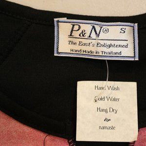 Lotus Asia print top v neck New Size S chest 30 inches round length 21.5 inches 65% polyester 35% cotton made in Thailand