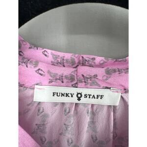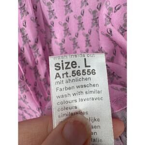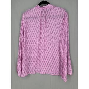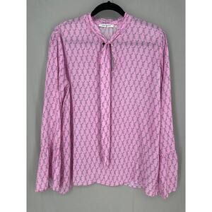 Funky Staff Top Womens Large Pink French Bulldog Print Silk Pullover Tie Neck