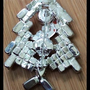 Large cool Vintage Christmas Tree Pin. Is very rare .unique & different Christmas Tree Pin from any I have ever seen! The colors are ORANGE, WHITE, PURPLE, BLUE & SILVER. It is large and measures approximately 3 inches long by 2 inches wide at its widest point. You will notice there is a tiny hole in the moon. This is the original intended design. It is not missing a stone.