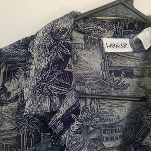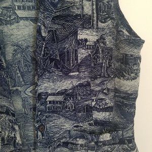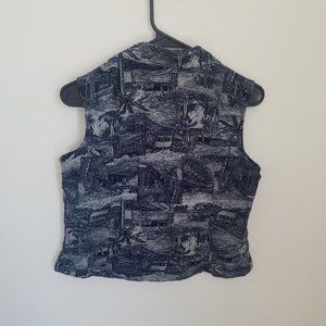 Super funky vintage illustrated Hawaiian shirt vest / sleeveless button up! It's illustrated all over with tropical golfing scenery and palm trees. Seriously one of a kind! The size is small, brand is Line Up. It looks so retro tied in front like a crop top.