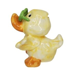 Funky Yellow Porcelain Duck Bank with Green Glasses
