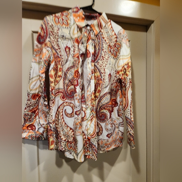 Cute funky button down shirt. Very colorful and soft. Size Large.
