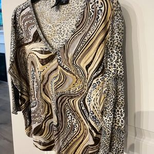 Funky leopard print, sequin embellished 3/4 sleeve t-shirt. Size XL. 100% Cotton. From smokefree home.