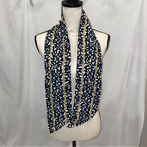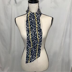 Funky vintage head wrap scarf belt wide navy gold squiggle