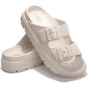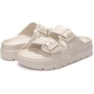 FunkyMonkey Womens Size 8 Off White Slide On Double Buckle Platform Sandal Shoes