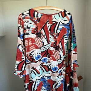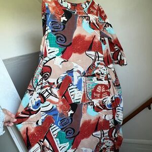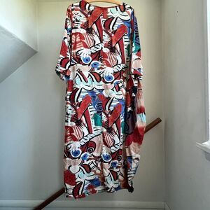 Funky artsy abstract patterned maxi dress laggenlook loose fitting oversized Medium