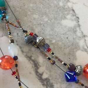 Fun multi color glass head necklace. All of the beads are glass. Art event