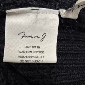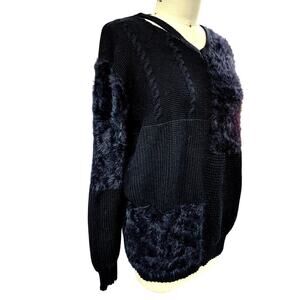 Funn J Black Knit Patchwork Tunic Sweater w/ Faux Fur Ribbed Trim Sz L