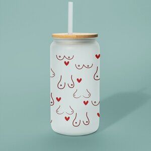 Funny Can Glass Cup, Funny Coffee Mug, Frosted Glass With Heart, Adult Humor