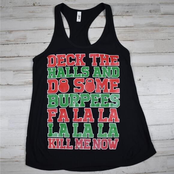 Funny Christmas Burpee WOD Crossfit Calisthenics black tank top Women's medium