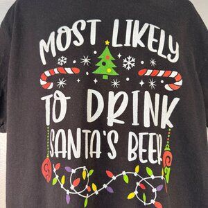 Funny Christmas Graphic Tee Most Likely To Drink Santas Beer Black Shirt Size XL