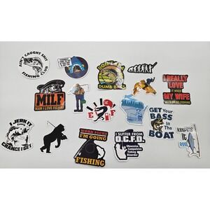 Deck out your gear with this awesome collection of 15 fishing-themed stickers. Each decal boasts vibrant colors and humorous designs, perfect for expressing your passion for the great outdoors. These durable, waterproof vinyl stickers are ideal for personalizing laptops, water bottles, cars, kayaks, tackle boxes, and more, adding a touch of personality wherever you go. Show off your love for fishing with these eye-catching additions, perfect for casual outings, fishing trips, or as a fun gift for the angler in your life.