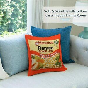 Funny Food Throw Pillow Cover 18x18 Velvet Soft Ramen Noodle Cushion for Sofa Be