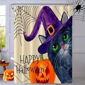 HALLOWEEN FUNNY DESIGN: Create a horror and fun atmosphere in your bathroom with this Halloween shower curtain featuring cat pumpkin and . Perfect for Halloween parties, haunted houses, and more; suitable for all kinds of parties and fun activities
