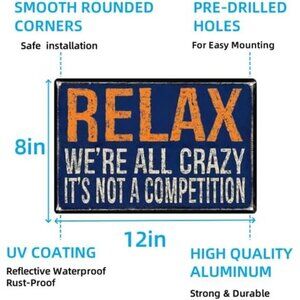 Funny Metal Sign – “Relax, We're All Crazy. It's Not a Competition” Funny