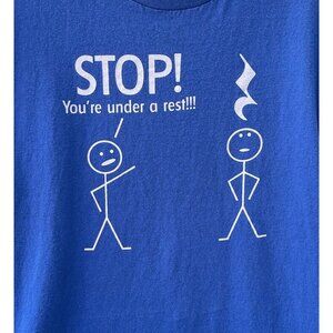 Funny Music Shirt "Stop! You're under a rest!!!" Men's Medium Short Sleeve Blue