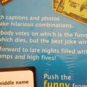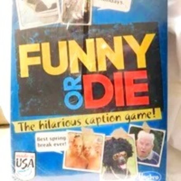Brand new, Funny or Die Game by Hasbro for 3-6 players.13 & up. Based on the hit comedy website Funny or Die. It's the game where you & your friends push the funny to the limit. The players vote on what's funny and what's not as they match hilarious captions with outrageous photos to create the funniest joke. Players who have the best jokes earn "money." The player with the most money is the most funny. A great game. Bundle and save
