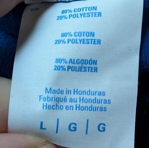 Fabric typeSolid colors: 80% Cotton, 20% Polyester; Heather Grey: 75% Cotton, 25% Poly; Dark Heather: 50% Cotton, 50% Polyester