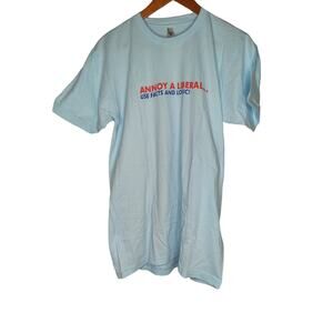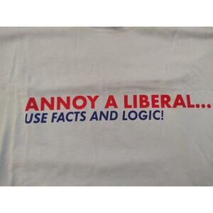 Funny Republican right wing t-shirt conservative annoy a liberal Medium, in good pre-owned condition, no holes no stains, minor wear, stale smell. Marked as a men's size medium, measurements are taken while laying flat and are approximate (see photos)