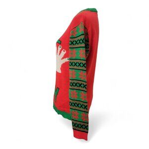 Funny / Ugly Christmas Sweater, Size M "Feel The Joy", Excellent Used Condition. Hilarious Red and Green Sweater with "Feel The Joy" and Hands on Front. Scandinavian Pattern on Sleeves. Please refer to measurements in photos to ensure proper fit. Shown on size 4-6 mannequin.