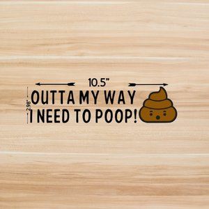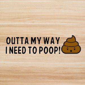 This listing is for a permanent vinyl decal. Outta My Way I Need To Poop!