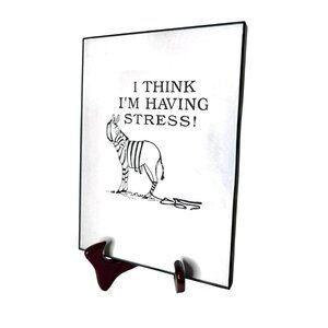 Funny Zebra "I Think Im Having Stress!" Wall Art Decor - Framed Print With Humor