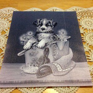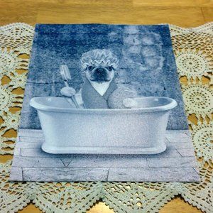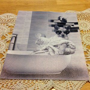 Six new pet prints on soft, flexible canvas material. These can be framed (if loose in frame, back with cardstock) or used in crafts projects. Could be pulled and stapled on canvas frame or glued on top of tables, etc. These are so funny. Four cats and two dogs in this set. Unique bathroom decor in black and white.