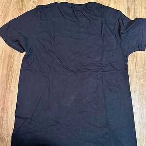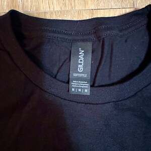 Black Gildan Softstyle t-shirt featuring the humorous phrase "I'd Love to Stay and Chat but I'm Lying" in bold blue print. This tee is made from a soft cotton blend, perfect for casual wear. Excellent condition, with no signs of wear.